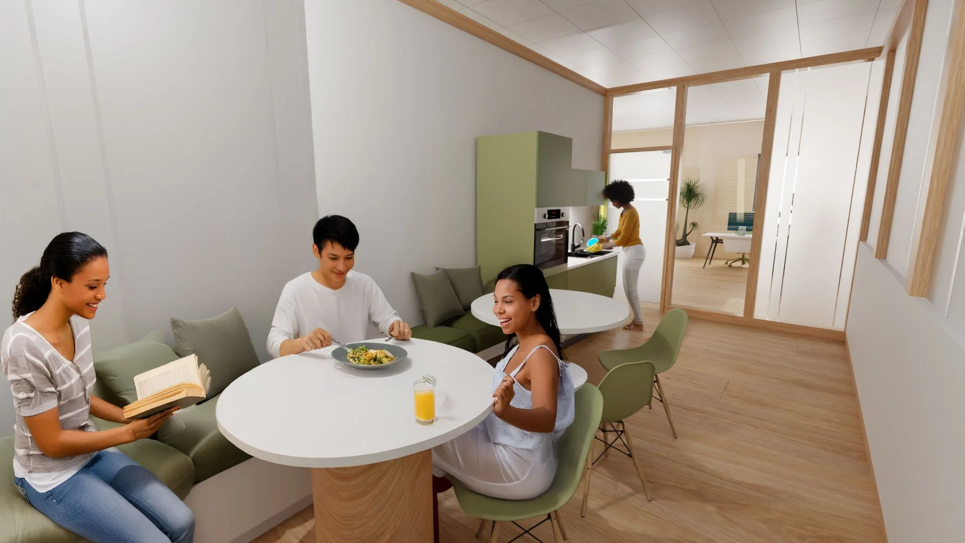 Quelques années plus tard, l’ancienne usine sucrière est reconvertie en bureaux, tout en conservant ses volumes extérieurs et ses emblématiques silos. Aujourd’hui, Galabé rend hommage au sucre du même nom. Artisanal et haut de gamme, le galabé est baratté à la main jusqu’à obtenir une consistance de caramel. Il est ensuite coulé dans des moules : on obtient alors de véritables pains de sucre ou lingots, qui ont servi d’inspiration architecturale pour la façade des immeubles et leurs ouvertures, le tout dans le respect des dernières normes environnementales en milieu tropical.